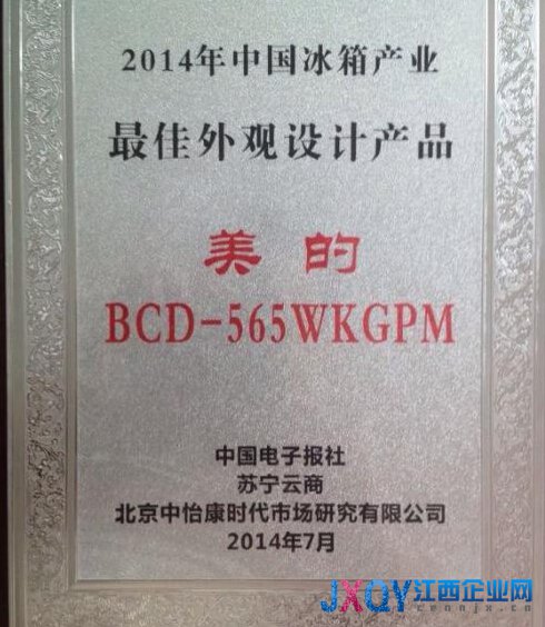 江西企业网讯 7月 2日下午,由中国电子报、苏宁云商和北京中怡康时代市场研究有限公司联合主办,以“智无疆 鲜无界”为主题的2014年(第七届)中国冰箱产业年会在京隆重举行。会上,主办机构和行业专家对2014年表现突出企业进行了颁奖。其中,美的冰箱荣获了“2014年中国冰箱产业线上销售领先奖”以及“2014年中国冰箱产业最佳外观设计产品”两项大奖,闪耀全场。