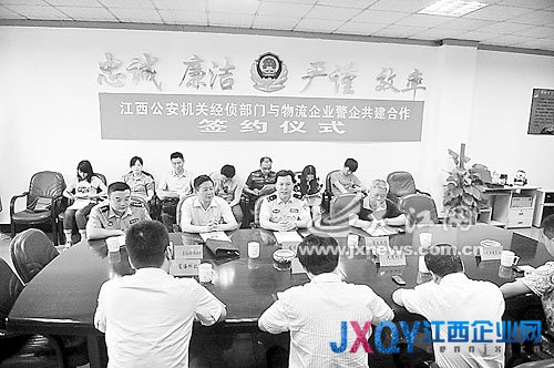 本报讯刘根保记者胡云芸报道:5日,江西省公安厅经侦总队与江西省大型物流企业举行警企共建合作签约仪式,省公安厅经侦总队总队长何军威代表江西公安机关经侦部门与4家知名大型物流企业负责人共同签署了合作协议。今后,江西公安经侦部门和物流企业将本着“互助共赢”的原则,全力遏制各类经济犯罪活动。此类警企合作在我省尚属首次。