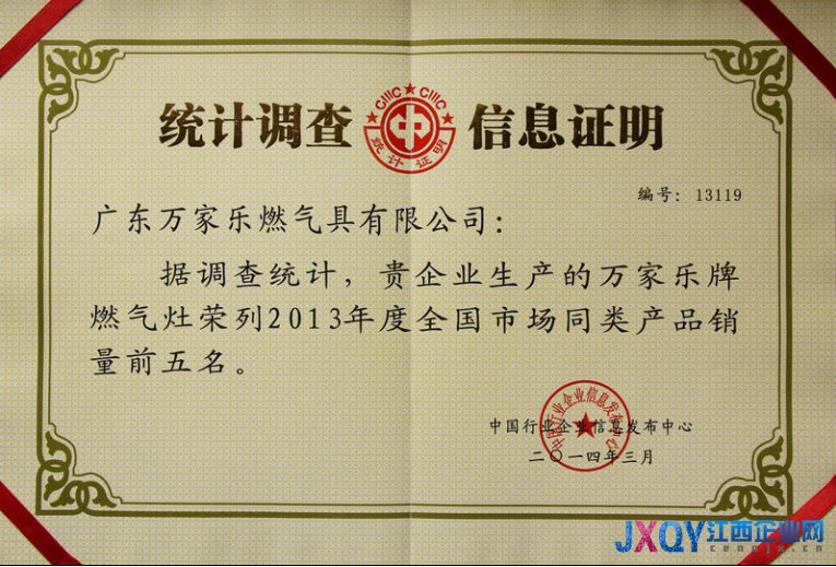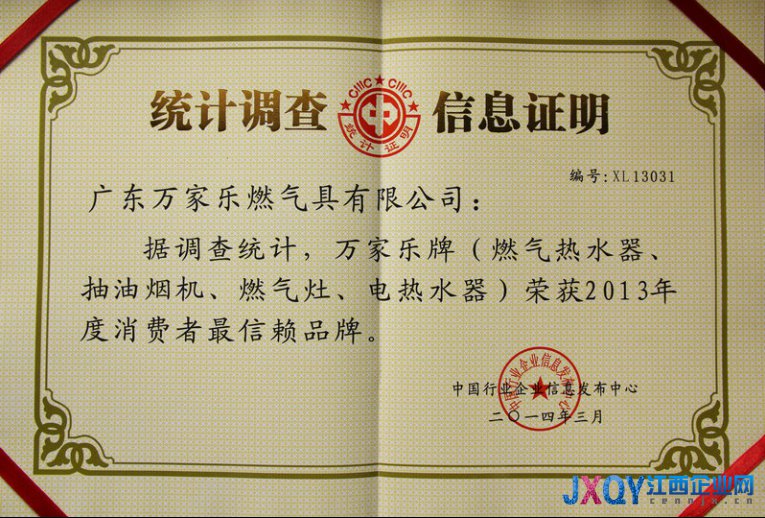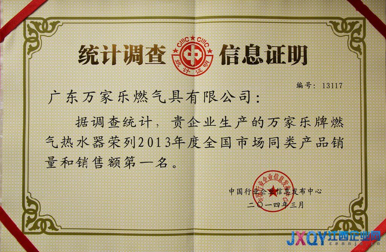 江西企业网讯 2014年3月,由国家统计局中国行业企业信息发布中心举办的“第18届全国市场销量领先品牌信息发布会”于北京人民大会堂隆重举行。会上统计监测结果显示:万家乐燃气热水器荣列2013年度全国市场同类产品销量和销售额第一名,并荣获2013年度消费者最信赖品牌称号,这也是万家乐连续第24年占据燃热市场销售龙头的位置。同时,万家乐电热水器、燃气灶、抽油烟机都进入2013年度同类产品全国市场销量前五名。
