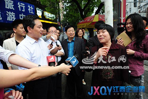 南昌市长陈俊卿在街头询问市民对“闯红灯”的看法