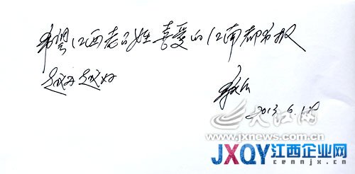 专访结束之后,宗庆后欣然给本报题字,“希望江西老百姓喜爱的江南都市报越办越好”。