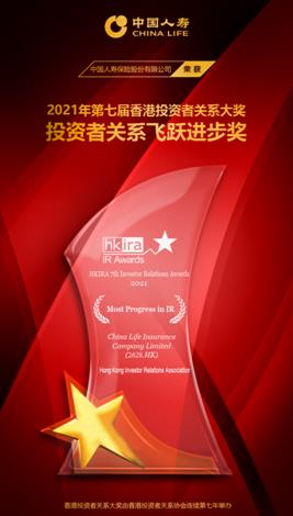 江西企业网讯 9月14日,由香港投资者关系协会(HKIRA)主办的“2021年第七届香港投资者关系大奖”获奖名单公布,中国人寿保险股份有限公司(以下简称“中国人寿寿险公司”)荣获“投资者关系飞跃进步奖”。这是该公司首次获得此奖项,彰显了香港业内对中国人寿寿险公司投关工作持续进步与改善的认可。